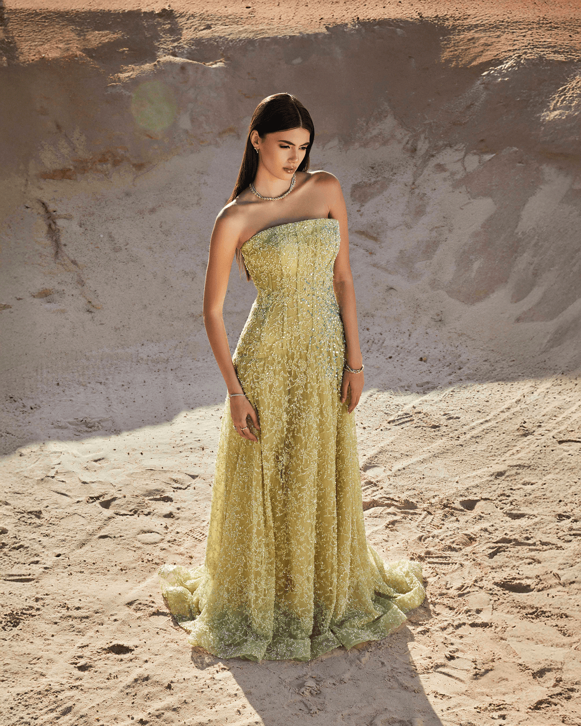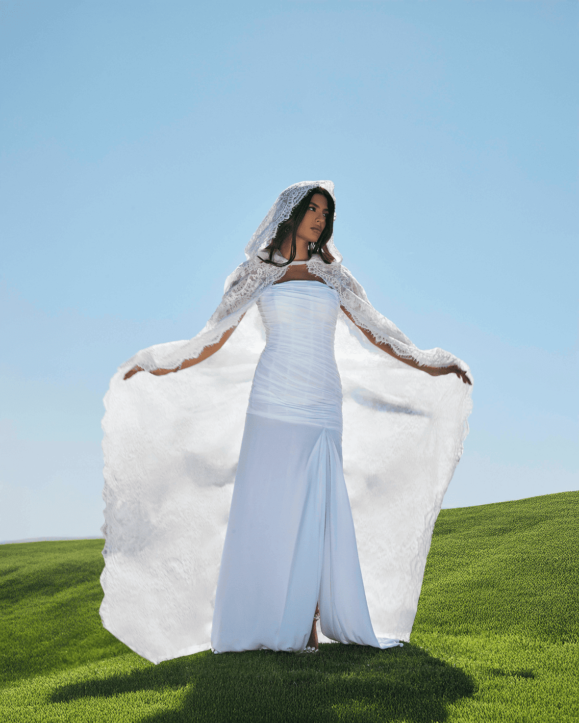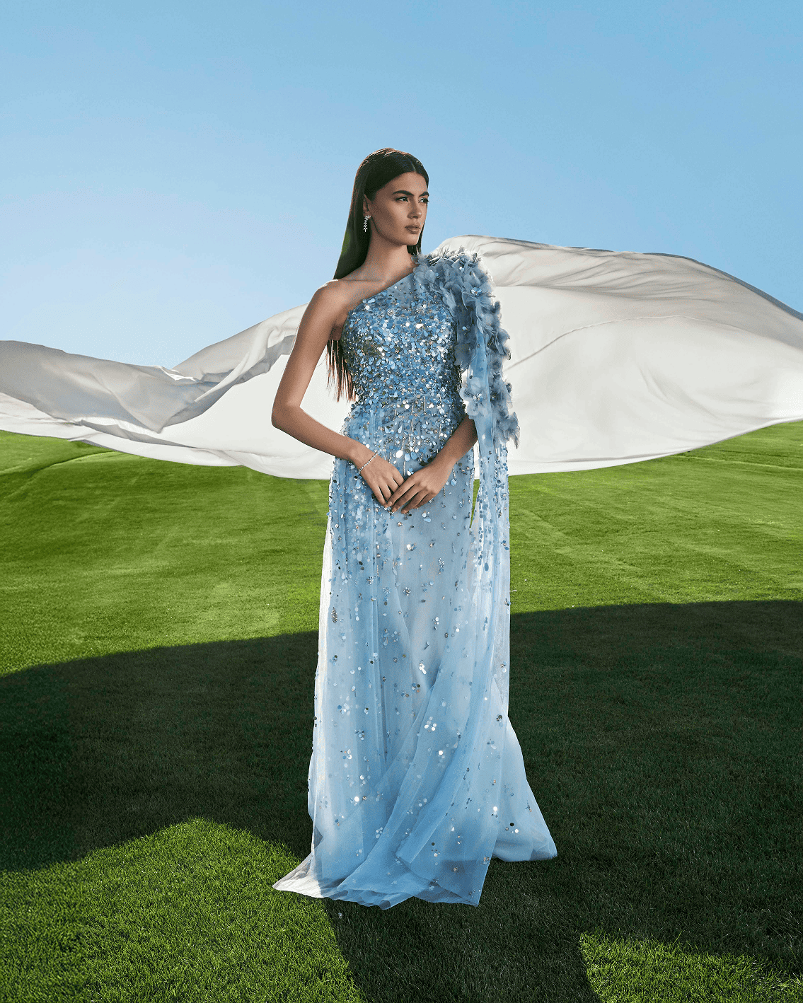 Sculpted Bloom translates the essence of spring into sculptural couture. The collection explores the dialogue between structure and fluidity, with dresses shaped to mirror the organic forms found in nature - from soft curves to precise, architectural lines.