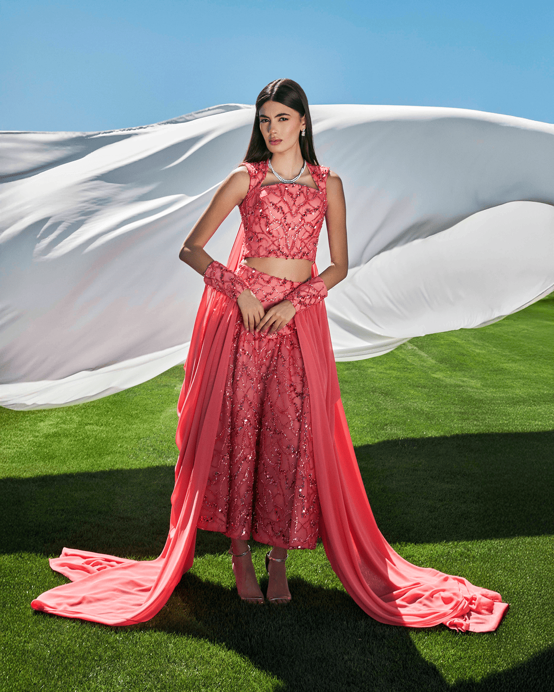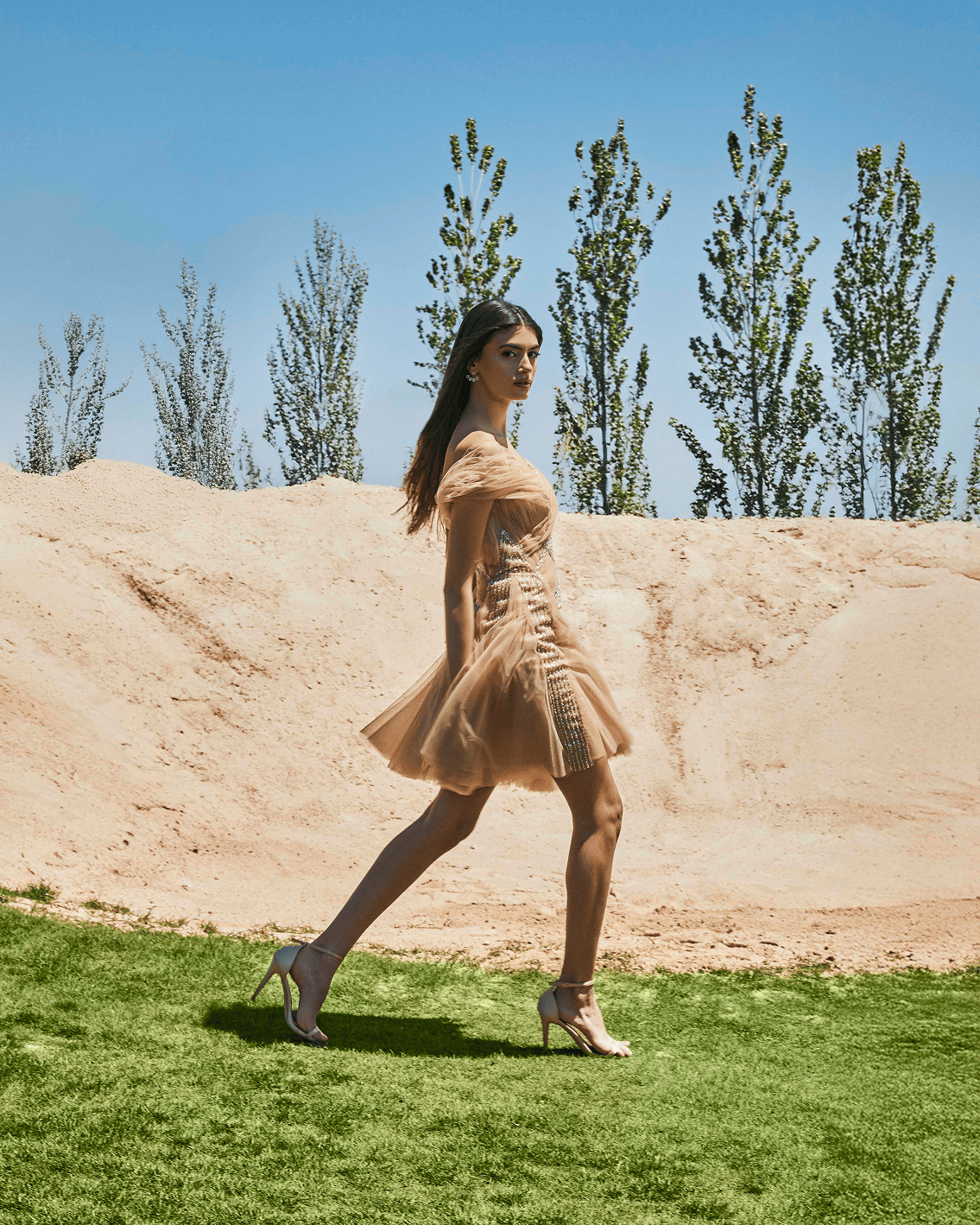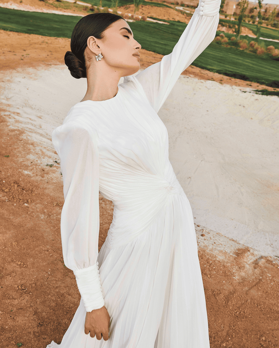 Sculpted Bloom translates the essence of spring into sculptural couture. The collection explores the dialogue between structure and fluidity, with dresses shaped to mirror the organic forms found in nature - from soft curves to precise, architectural lines.