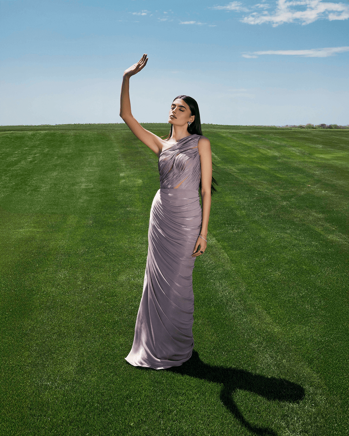 The color story is rooted in spring’s natural palette: fresh pastels, muted tones, and delicate shades that recall the light of early mornings and gardens in bloom. Fabrics are layered and crafted to capture both movement and stillness, offering silhouettes that are at once refined and effortless.